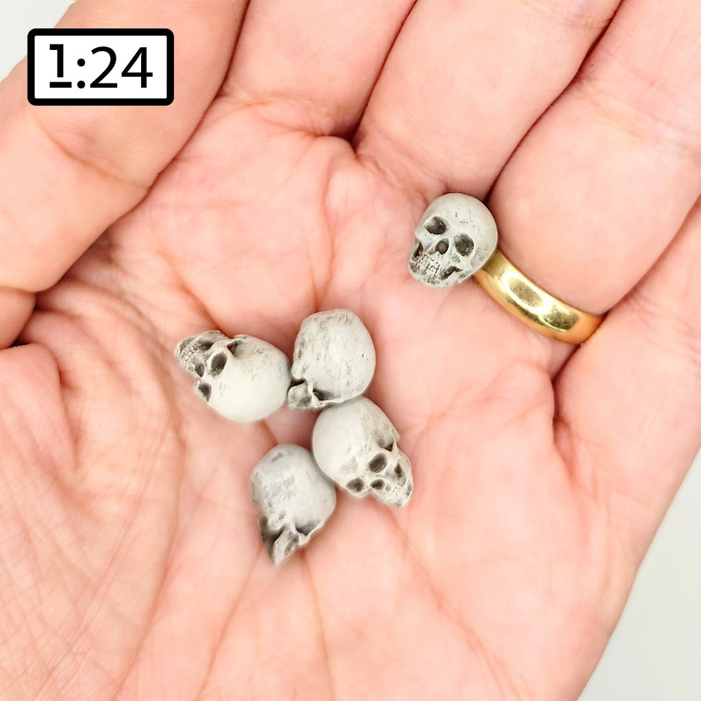 Human skull replica, 1:24 Scale tiny great for dioramas, miniature horror props, dice making and dollhouse accessories (set of 5)