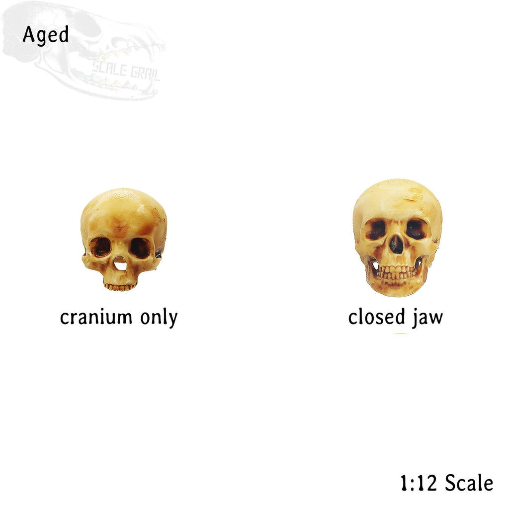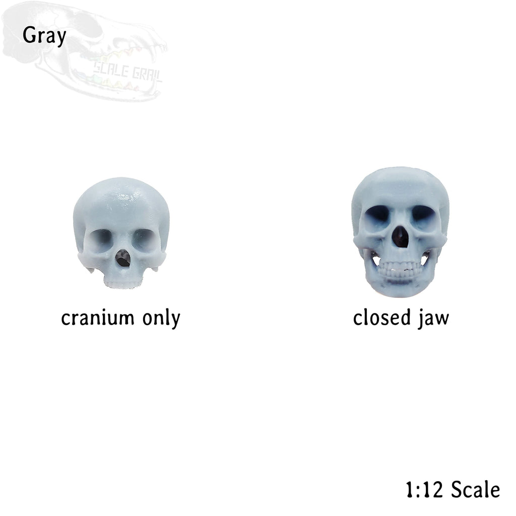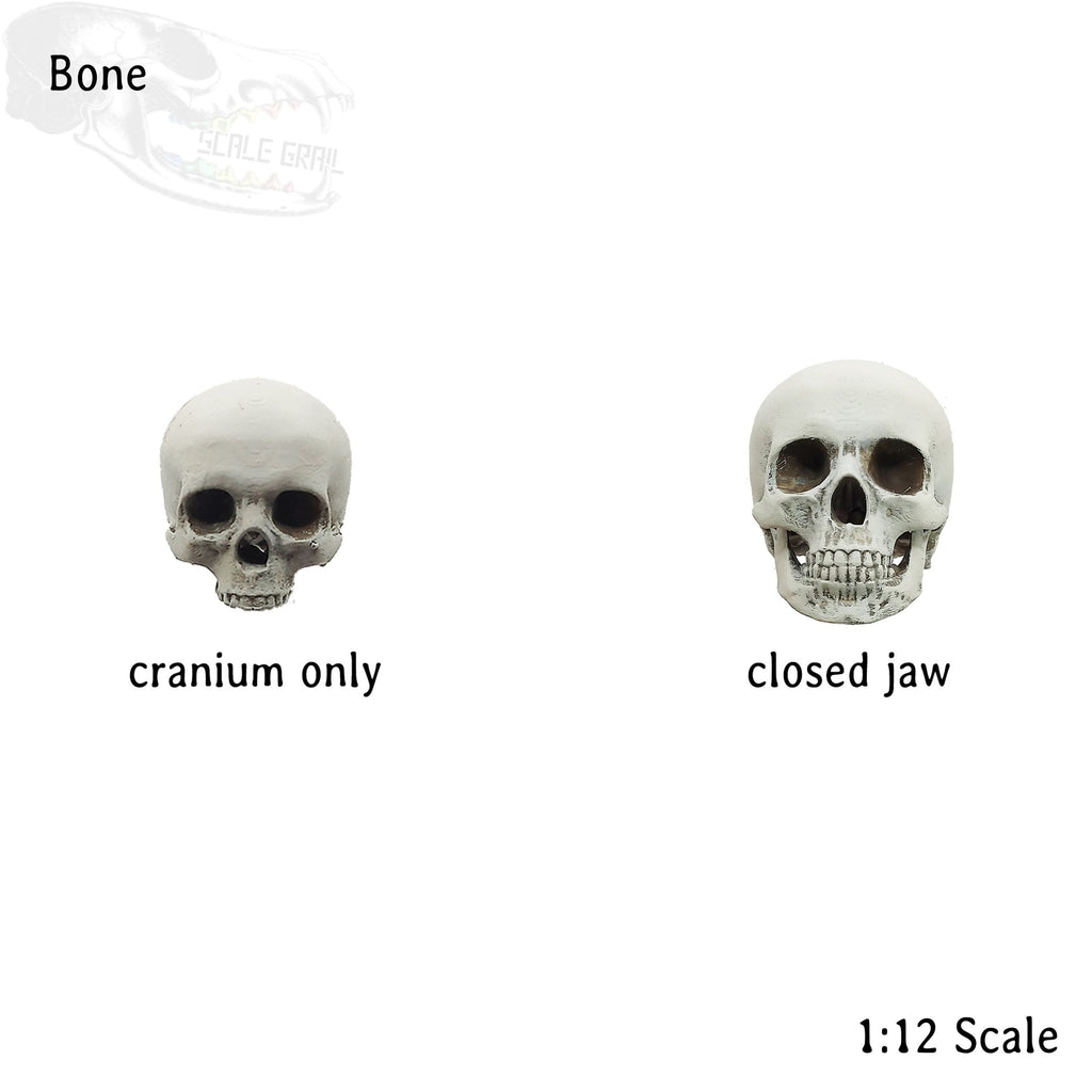 Human skulls with Flat Back, 1:12 scale human craniums for horror dioramas, terrariums, dollhouse, arts and crafts accessories (5 skulls)
