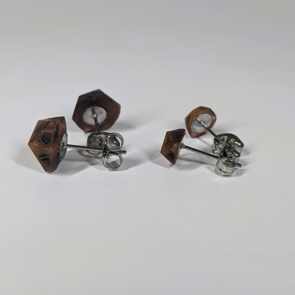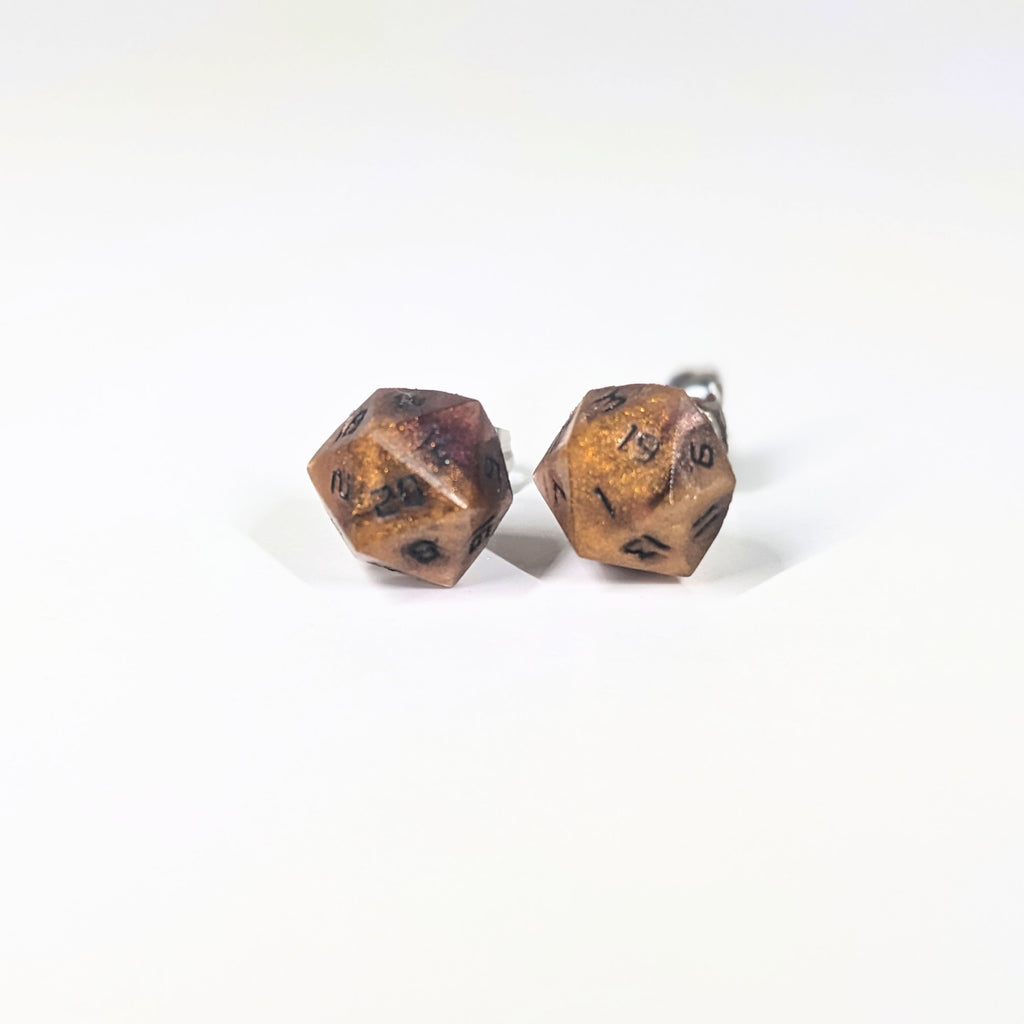 Lava D20 Stud Earrings - Orange Red Molten Dice Jewelry