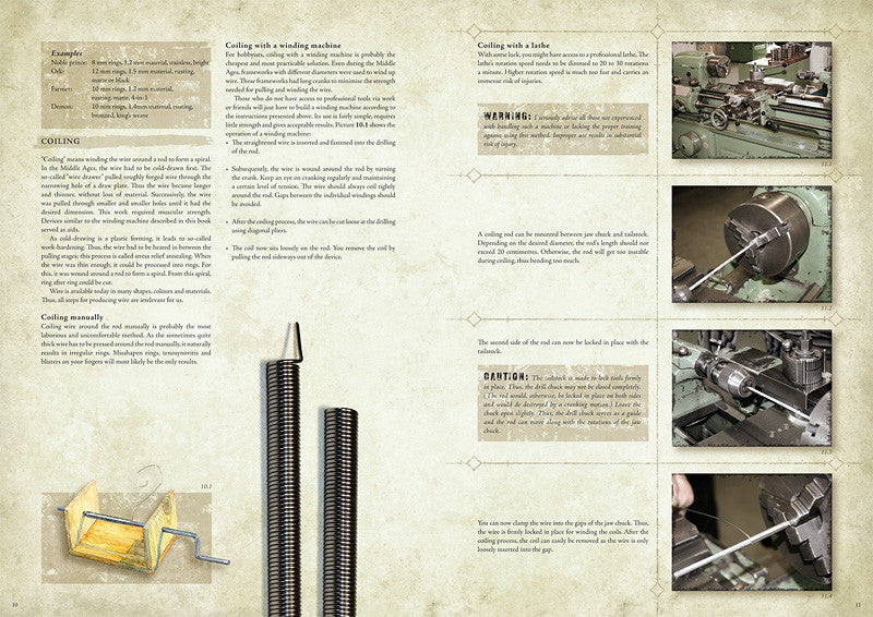 Whether it is for larp, theater production, living history event or other related hobbys, with your own hauberk, coife, trousers or other chain mail objects you are ready for battle. But how do you create a customfit pattern for your own chain mail? What needs to be considered while making chain rings? And what are the best techniques for weaving thousands of rings together? These and other questions will be answered by the author step by step and with fully illustrated instructions. The reader learns the practicalities of how to transform a roll of wire into a chain mail armour.