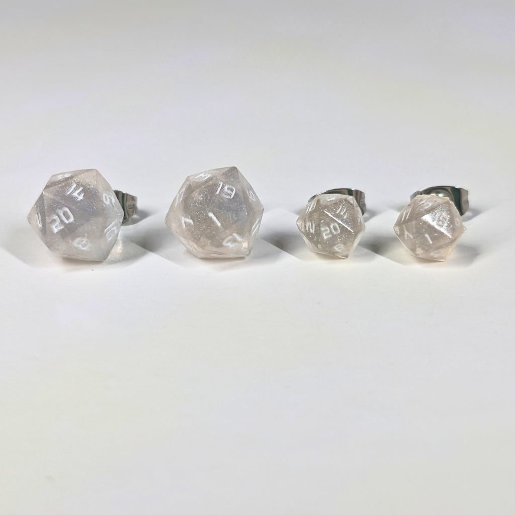 Rosey Reflections D20 Stud Earrings - Pink Clear Dice Jewelry