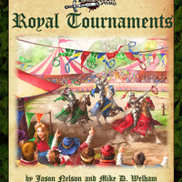 An iconic moment in fantasy fiction is the grand tournament. From the archery contests of Robin Hood to the jousts of Ivanhoe, it seems like half the stories about the Middle Ages have the heroes attend such a festival somewhere along the line. Whether honoring the king's birthday, the birth of a saint, the nation's victory over its enemies, or just because it's Midsummer's Day, festive pavilions are raised and flags and pennants flap in the rising breeze to signal that it is time for the main event to begin! However, even in the real-world tournaments were about far more than bows and lances, and in a fantasy game the options for what would constitute a friendly (or even not-so-friendly) competition are infinitely varied, from gritty and brutal feats of raw strength to magical marvels of the highest fantasy. You'll find athletic contests for running, riding, jumping, and more, to caber tossing, target shooting, tag-team wrestling, and armored ring races! From prosaic rural delights of a country fair to exotic events like the tower of jewels and pillars of life and death, Royal Tournaments is a fantastic resource for incorporating tournaments and festivals into your campaign, including an array of different tournament events and awards, some physical, some magical, some social, and all delightful. Whether your players want to promote the interests of their own kingdom or simply fight for glory and prizes, Royal Tournaments has everything you need to make the tournaments in your campaign magnificent and memorable. Grab this 42-page Pathfinder Roleplaying Game accessory today and Make Your Game Legendary!