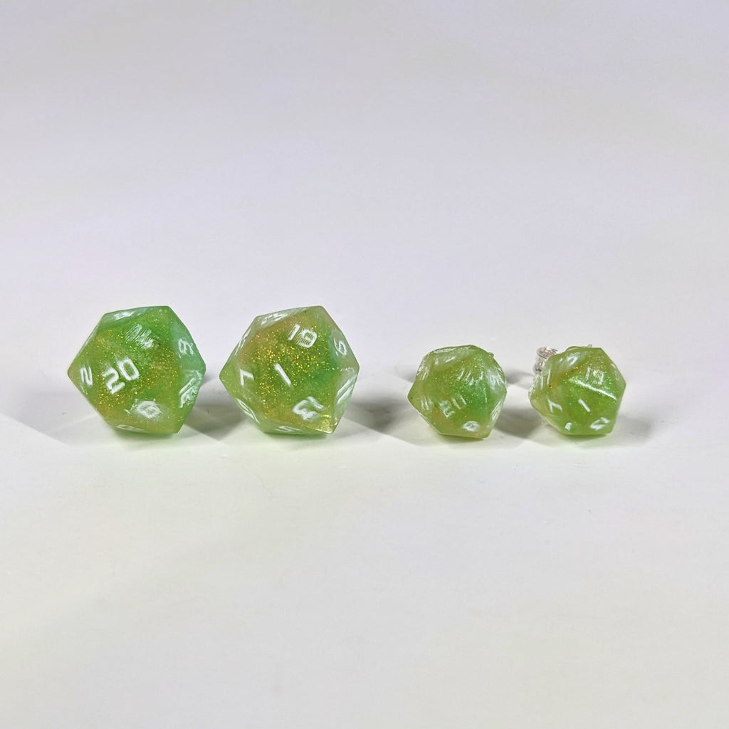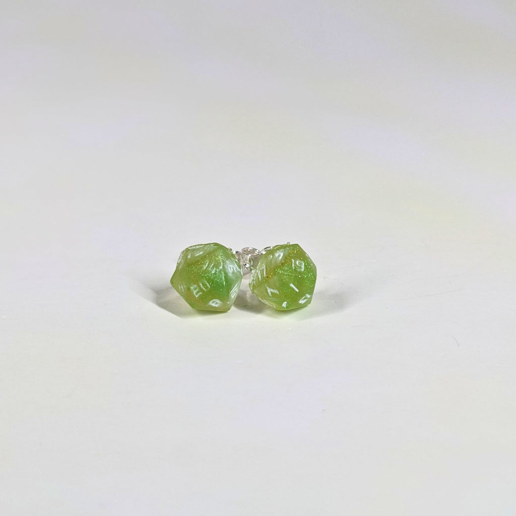 Spring's Fortune D20 Sterling Silver Stud Earrings - Gold Green Dice Jewelry