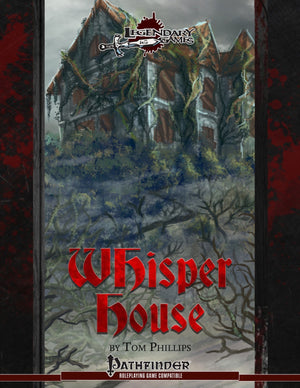 Traveling through eerie and ancient wooded riverlands, a foraging party is long overdue in the gloaming dusk. The hunters from a backwoods village of degenerate and inbred woodfolk are surely bloodthirsty enough for an ambush, but can your allies be found bound in their hovels, or is a more sinister happening afoot? The shadow of witchcraft stained with the essence of malevolence from beyond time and space draws the heroes to the ragged hilltop manor, where the corrupted scions of a once-noble bloodline strain the veil between this world and the realms of pure madness beyond. What is left of their clan, and of the friends who may have been spirited away to Whisper House? Check out Tom Phillips' terrifying 54-page Pathfinder Roleplaying Game adventure for 8th-level characters today and Make Your Game Legendary!