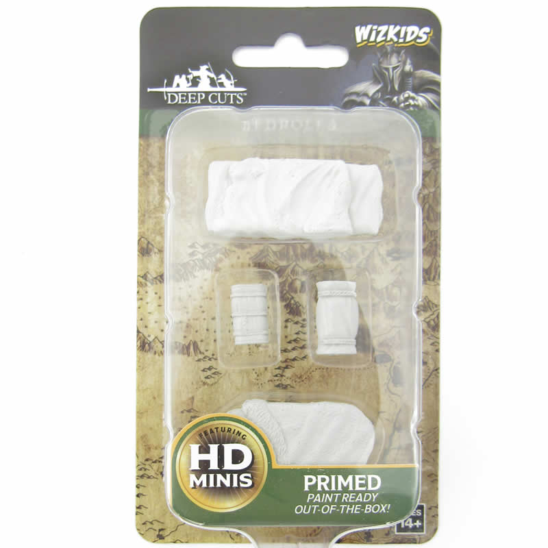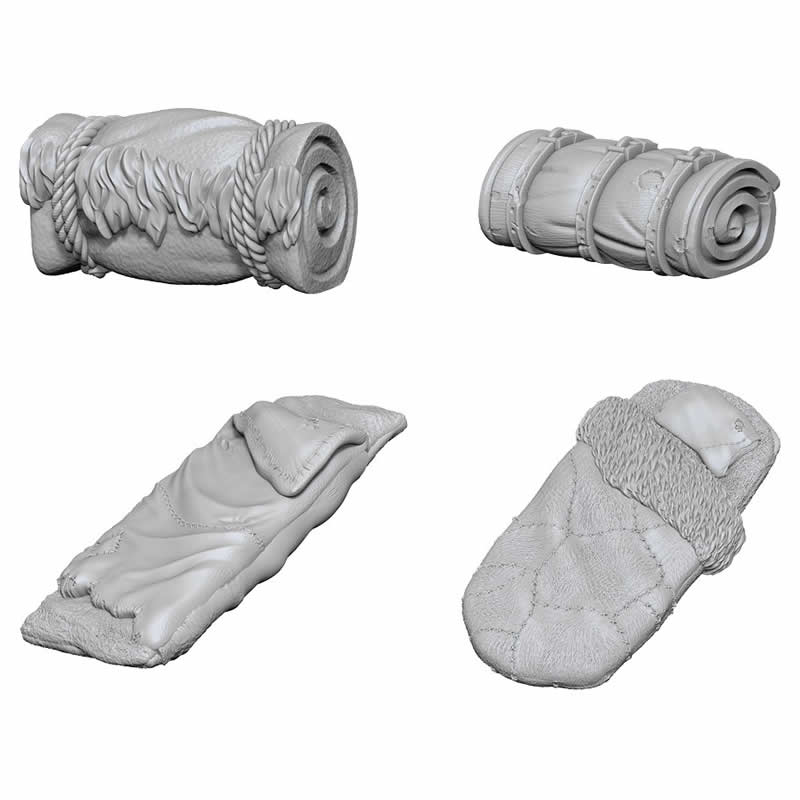 Add realistic camping details to your tabletop adventures with this Bedrolls scenery pack from WizKids Deep Cuts Unpainted Miniatures.
