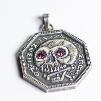 Ruby Inset Eyes Memento Mori Silver Necklace - Sterling Silver Bale $268.10