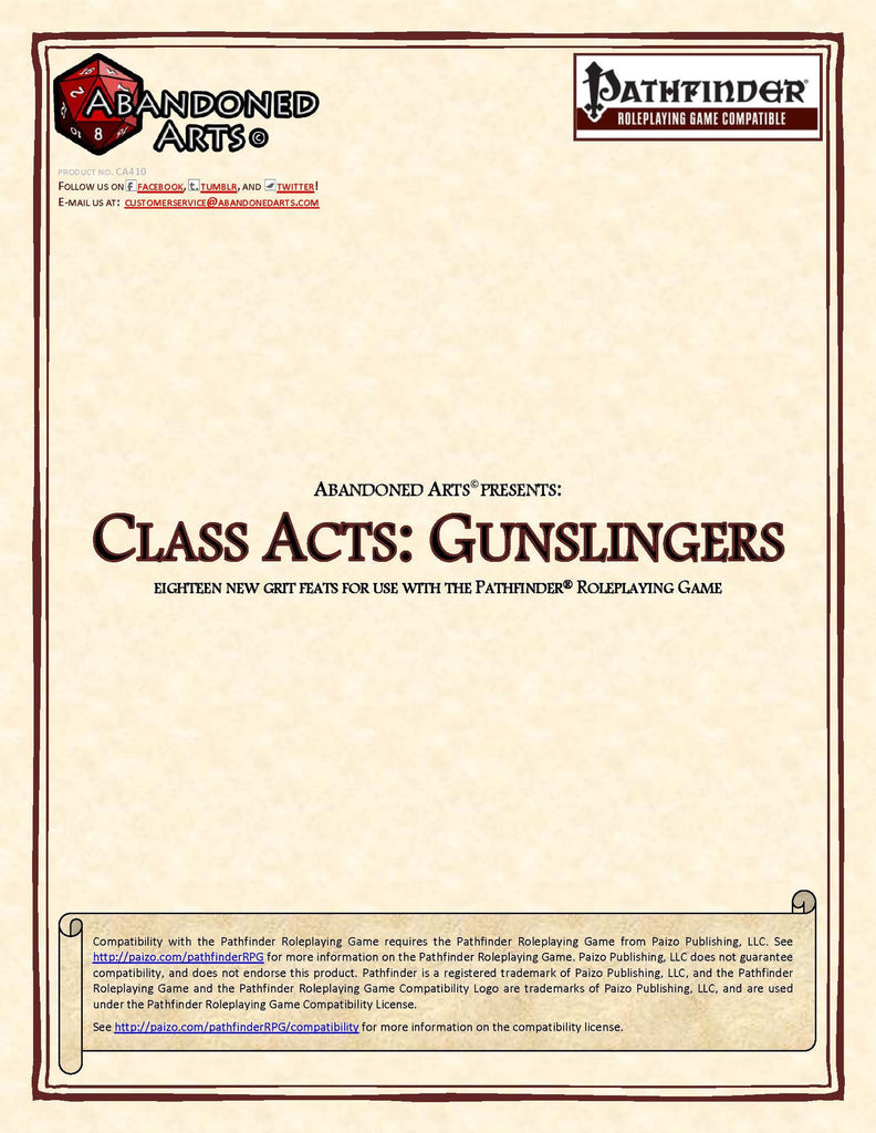 Class Acts: Gunslingers includes eighteen feats for gunslingers, including well over a dozen new grit feats.