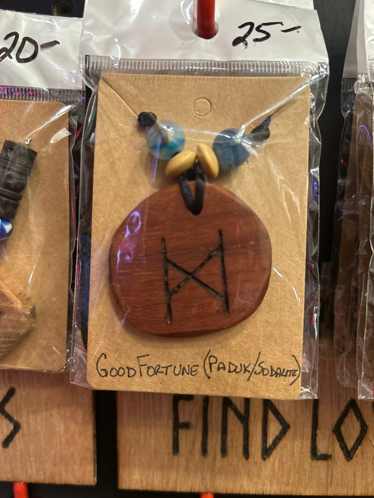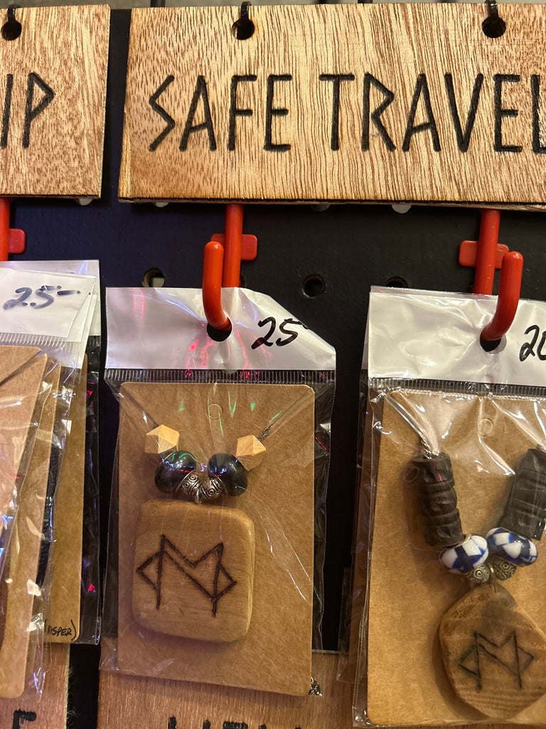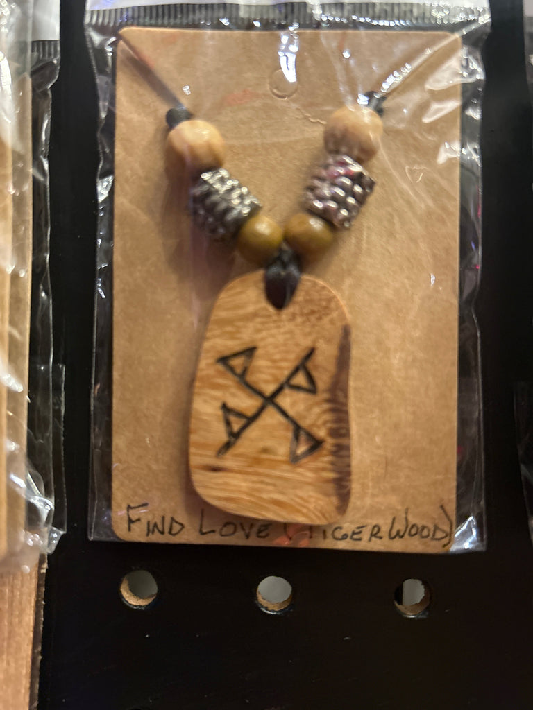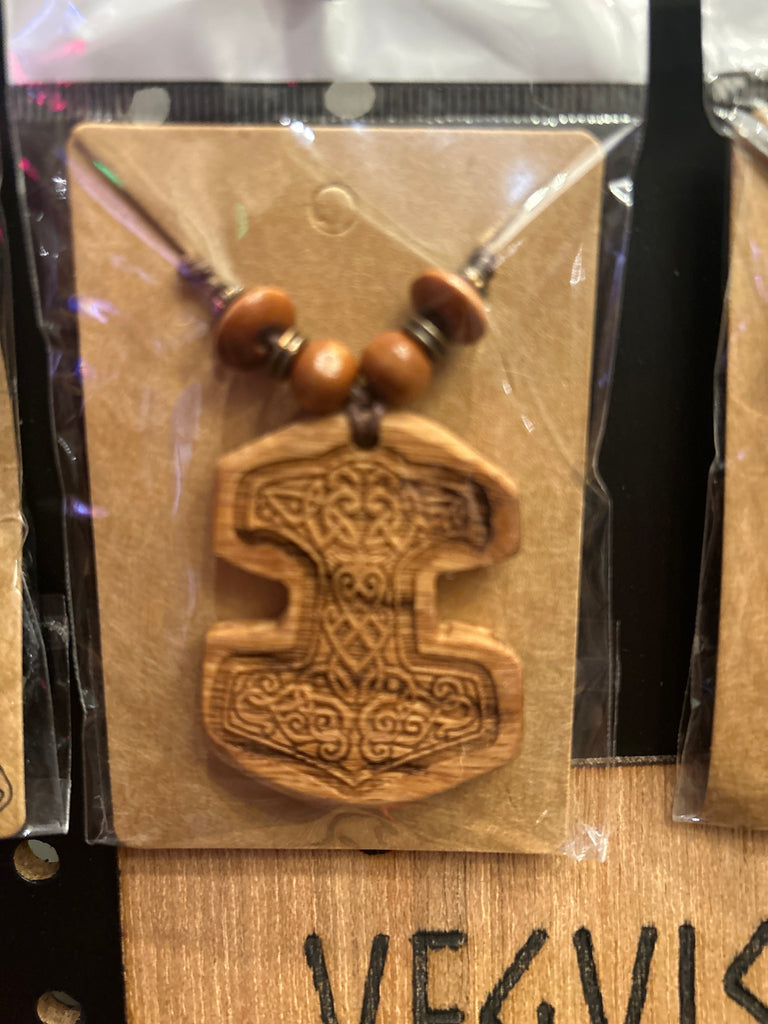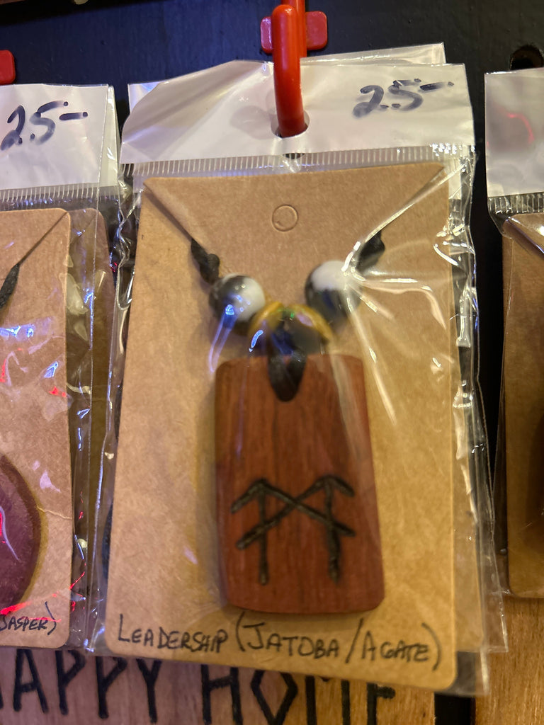 Every primitive Viking Bindrune talisman is crafted with meticulous attention to detail. The designs are cut and shaped by hand, then sanded and inscribed using a pyrography pen. Many of the pendants are further enhanced with semiprecious beading to add to the meaning behind the runes. Each necklace features beautiful hardwood or luxurious exotic wood.