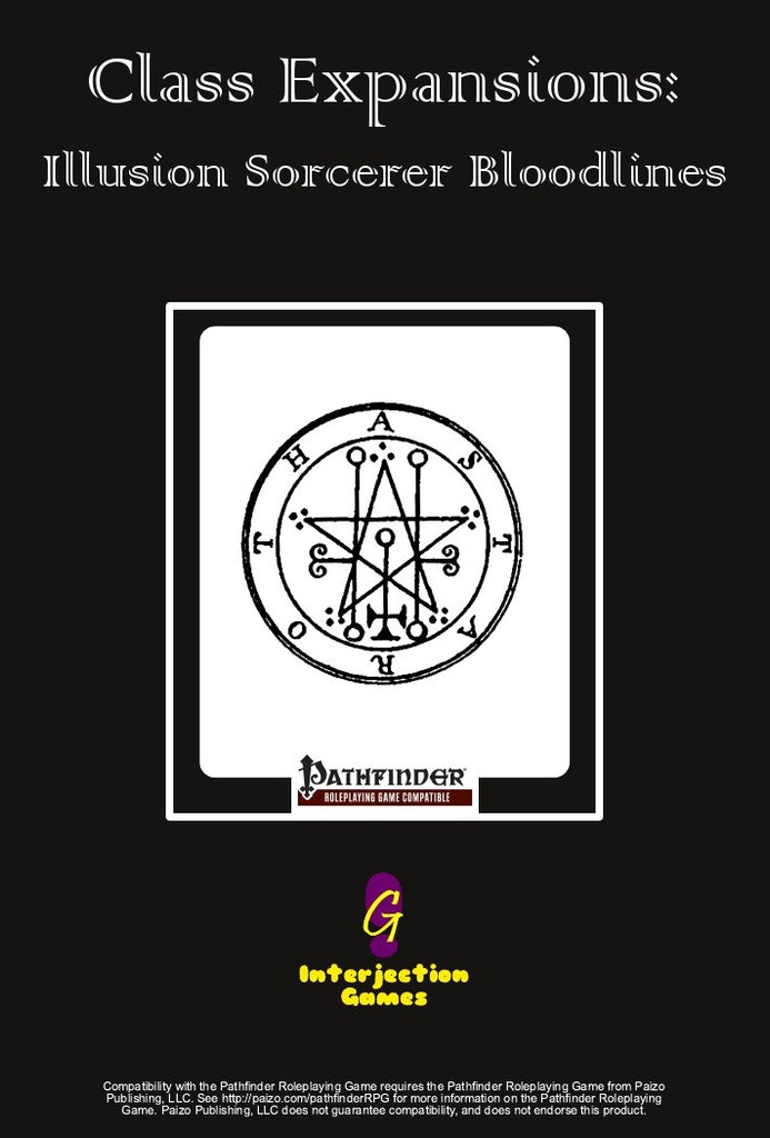 Following in this vein, Class Expansions - Illusion Sorcerer Bloodlines introduces three new sorcerer bloodlines, each of which focuses on a particular subtype of spell found in the Illusion school.