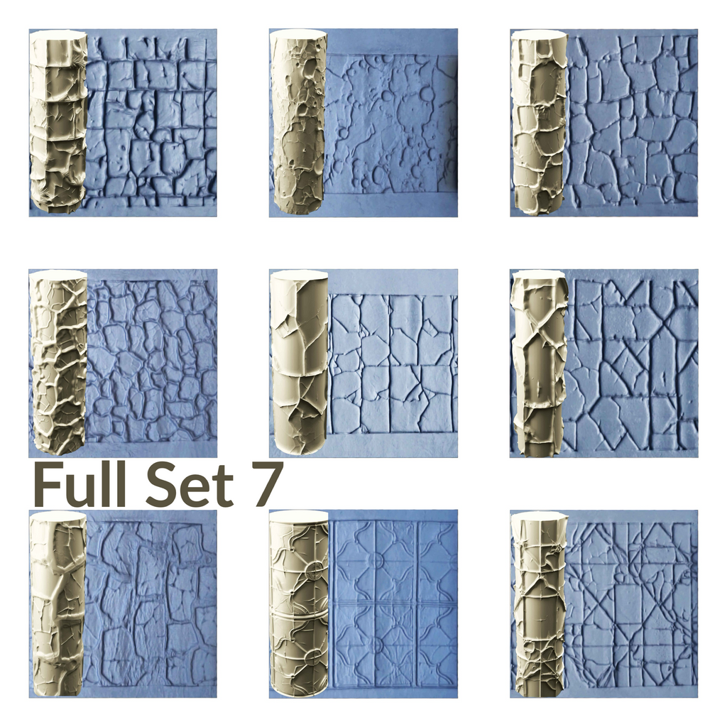 Cobblestone and Tile Texture Roller, 4 Inches Tall, Clay texture roller Seamless Design art craft diorama STL Loot Factory (Set 7)