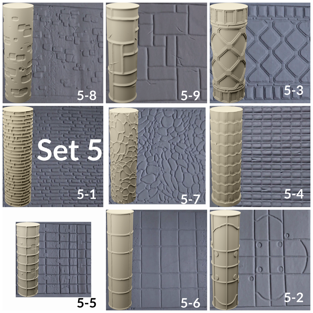 Cobblestone Texture Roller, 4 Inches Tall, Clay texture roller Seamless Design art craft diorama STL Loot Factory (Set 5)