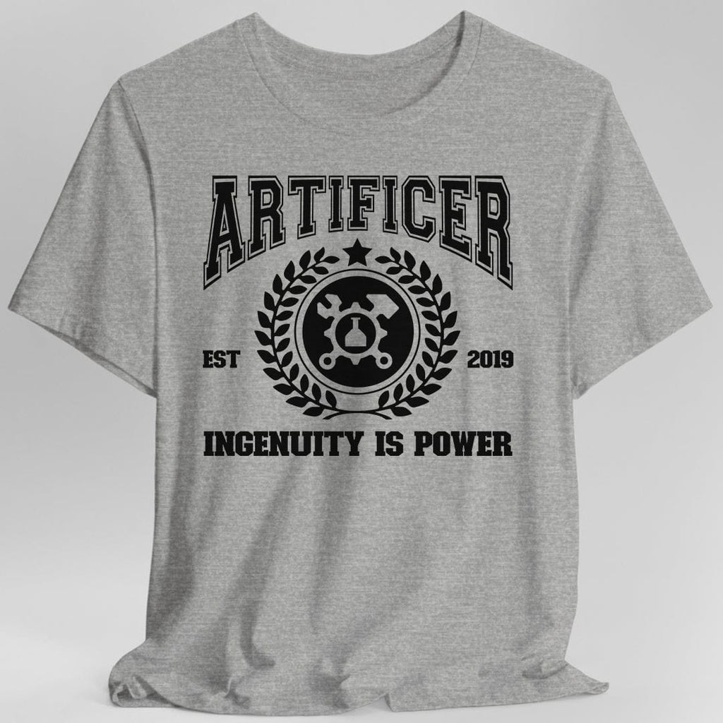 Whether you're crafting magical items, solving puzzles with ingenuity, or just love the Artificer's creative approach to adventure, this tee is your perfect companion. Wear it proudly and let everyone know you're part of the Artificer class!