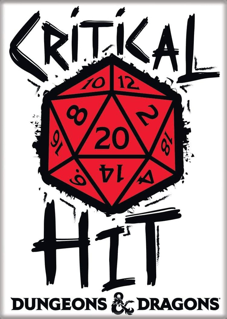 Ata-Boy, the leader in pop culture novelty items, brings you the DnD Critical Hit Magnet. Measuring 2.5" X 3.5", this magnet is the perfect size to add a touch of fun and personality to any magnetic surface. Ideal for fans of Dungeons and Dragons, it's not just a magnet, it's a statement piece. Whether you're looking to spice up your fridge or locker, this magnet is sure to catch the eye and spark conversations. It's more than a collectible, it's a pop culture phenomenon. Bring the excitement of your favorite game into your everyday life with the DnD Critical Hit Magnet.