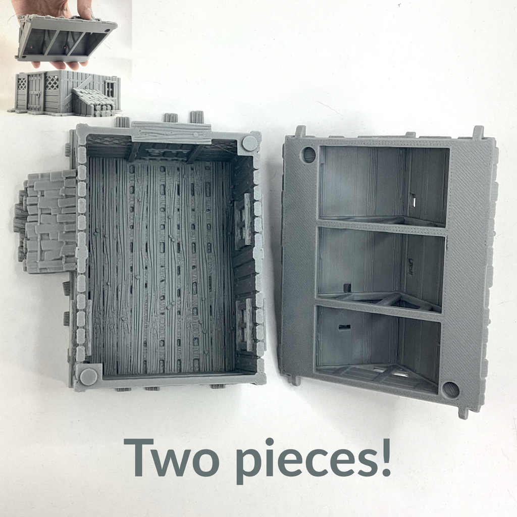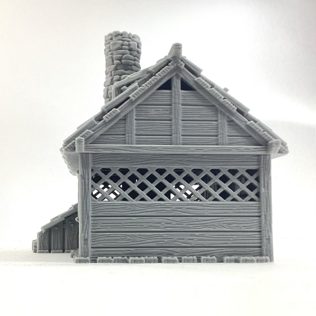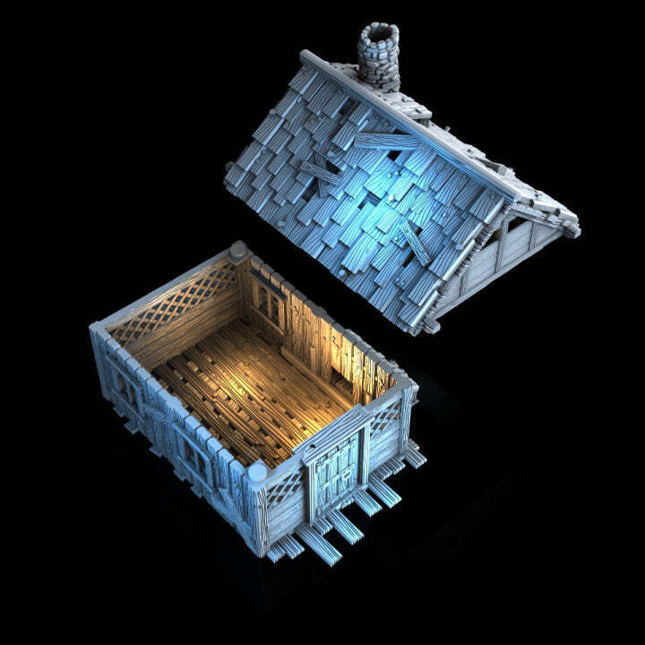 Step into your next tabletop adventure with this Lumberjack House in 28mm from 3dpforu! This highly detailed, two-piece playable hut is perfect for ttrpgs. Made of pla plastic in a neutral grey, it awaits your personal touch with paint. Prepare for hours of immersive gameplay!