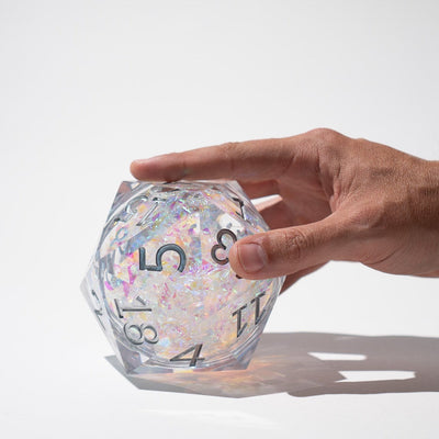 Massive Silver And Foil Liquid Core 95MM Chonk Handmade Resin Dice And Box $139.99