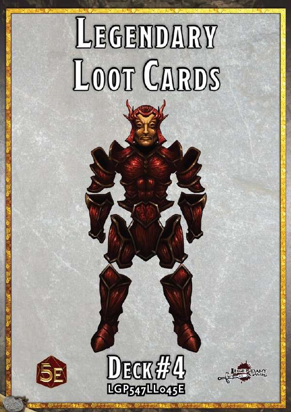 Legendary Loot Cards bring you a killer collection of handy magic item resources that makes life easy on you as a player or a GM. Just hand out the cards your heroes find and keep them with your character sheet and you're always ready for action! New sets of Legendary Loot Cards will be releasing quarterly, and you can get new magic items and other 5E rules content every single day at the Legendary Loot Patreon, with FREE magic items every Friday, plus new classes, spells, monsters, and more! If you're playing 5th Edition, this 80-card deck will definitely help Make Your Game Legendary!