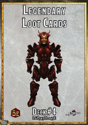 Legendary Loot Cards bring you a wealth of treasures for your DnD 5E campaign, each beautifully illustrated and with complete rules! You'll find dozens and dozens of magic items of every kind, from the abyssal carcass to the wolf hair shirt, from common items like the tomb tapper and accompanying instrument to legendary treasures like the unbroken blade and glabrezu claw. You'll find magical implements like the wand of extinguishing and sunrise icon alongside weapons like the spinelash and bolstering battleaxe, as well as all-purpose tools like the skystrider harness, séance candle, roperunner’s cord, and potion of rainbow hues! Plus, you get bonus rules for epic attunement of items for character who truly have the touch of destiny about them! Items are placed one to a card, save a handful of complex items spread over 2-3 cards. Print the cards you need or order a set of printed cards, perfect to use with your own deck boxes or card sheets!