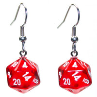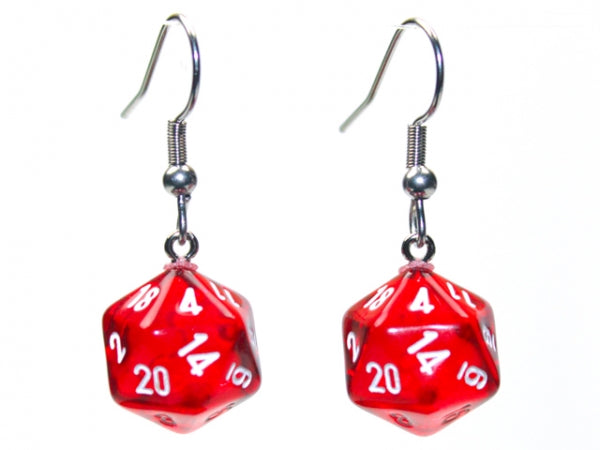 Chessex Dice: Hook Earrings - Translucent Red Mini-Poly d20 Pair