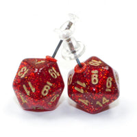 Chessex Dice: Stud Earrings - Glitter Ruby Mini-Poly d20 Pair