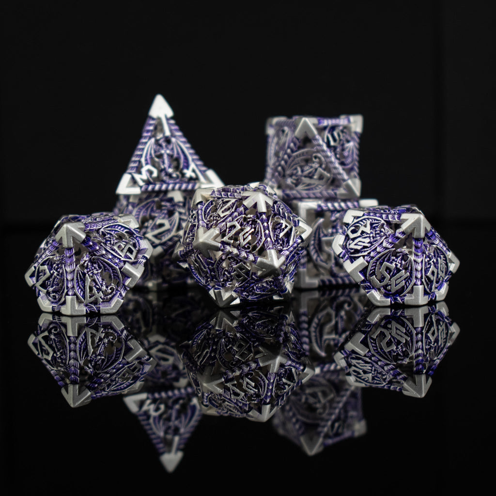 Dragonguard Hollow Metal Dice Set - Purple and Silver
