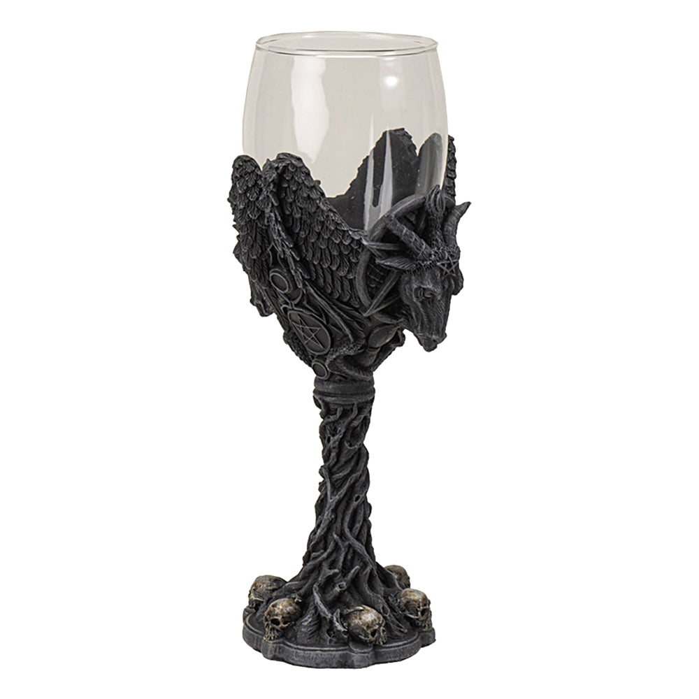 This Baphomet Wine Goblet measures 8" tall and. Goblet capacity is 5.3 ounces.