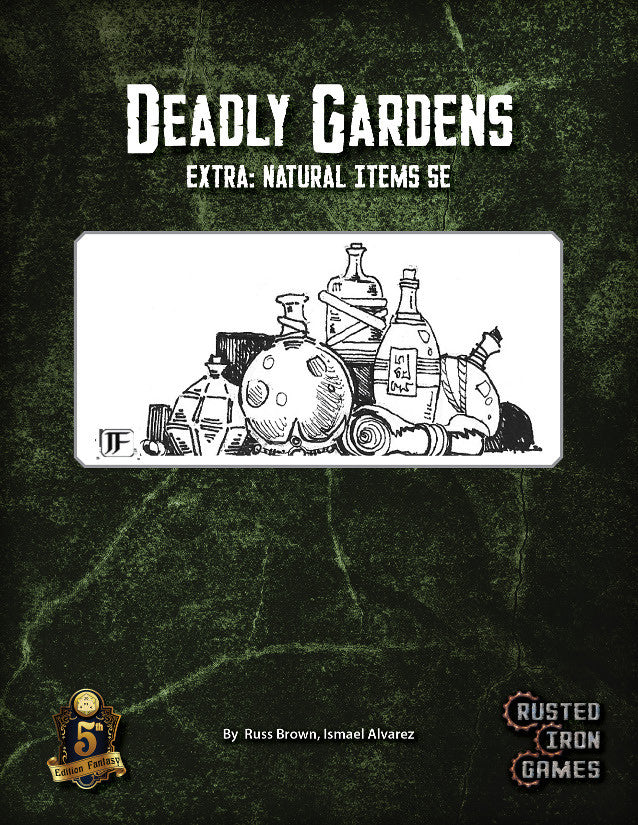 Deadly Gardens is a series of short PDF documents that each feature a brand new plant monster to use in your 5th Edition Fantasy campaigns. In addition to a new monster, each volume will also feature supplemental material based around the natural wilderness theme. This Deadly Gardens extra document provides the rules for Natural Items as a separate, free download so that we can avoid reprinting the same rules in future volumes of the series.
