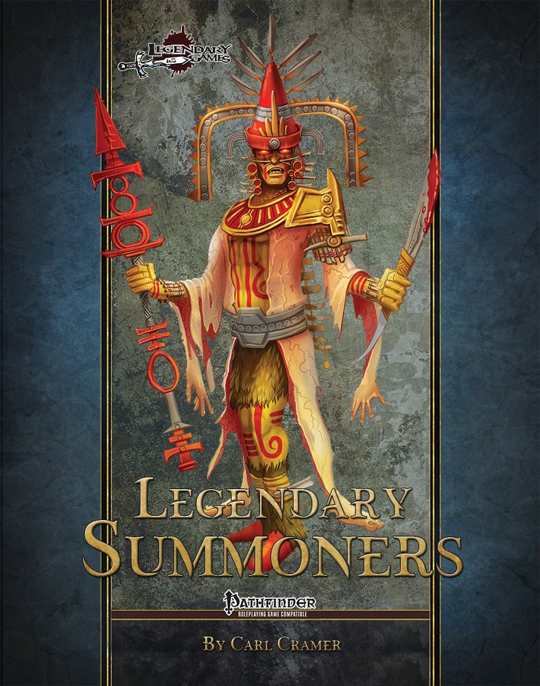 Legendary Summoners is the latest volume in our new series of class-focused player supplements for the Pathfinder Roleplaying Game, this time tackling the summoner and unchained summoner class! This book helps bridge the gap between the two with nearly 20 summoner archetypes to expand your PC and their eidolons and summoned minions! You'll find brand-new archetypes like the clan summoner, creative artist, and hostile summoner, alongside hybrid classes like the monster channeler, monster knight, and monster magus that blend the unchained summoner with classes like the magus and cavalier in a spectacular synergy. You'll also find updated, expanded, and enhanced "legacy" archetypes for the original summoner like the blood god disciple, broodmaster, story summoner, and synthesist, revised and redesigned to fit seamlessly with the unchained summoner's altered mechanics. You'll also find over a dozen new spells, feats, and creature templates to expand your summoner's capabilities and help them branch out to call upon creatures from every bestiary book! However you play your summoner, you'll find a ton of terrific options to unleash. Check out this 36-page Pathfinder Roleplaying Game supplement by Carl Cramer today and Make Your Game Legendary!