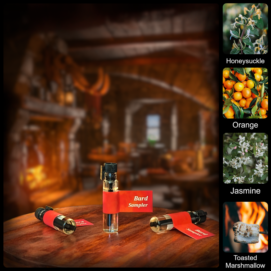 Inspired by a bard's tale of love. The Bard scent is a floral perfume with sweet, fruity, and spicy accents.