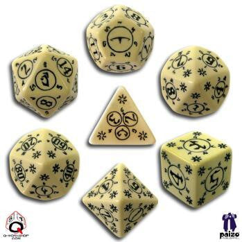 These are 100% official Pathfinder Adventure Path: Rise of the Runelords dice and are a perfect supplement to the widely acclaimed Rise of the Runelords adventure path. Featuring intricate runes from the ancient civilization of Thassilon and the usual high quality of Q-workshop engravings, these dice are a real treat to any Pathfinder player.