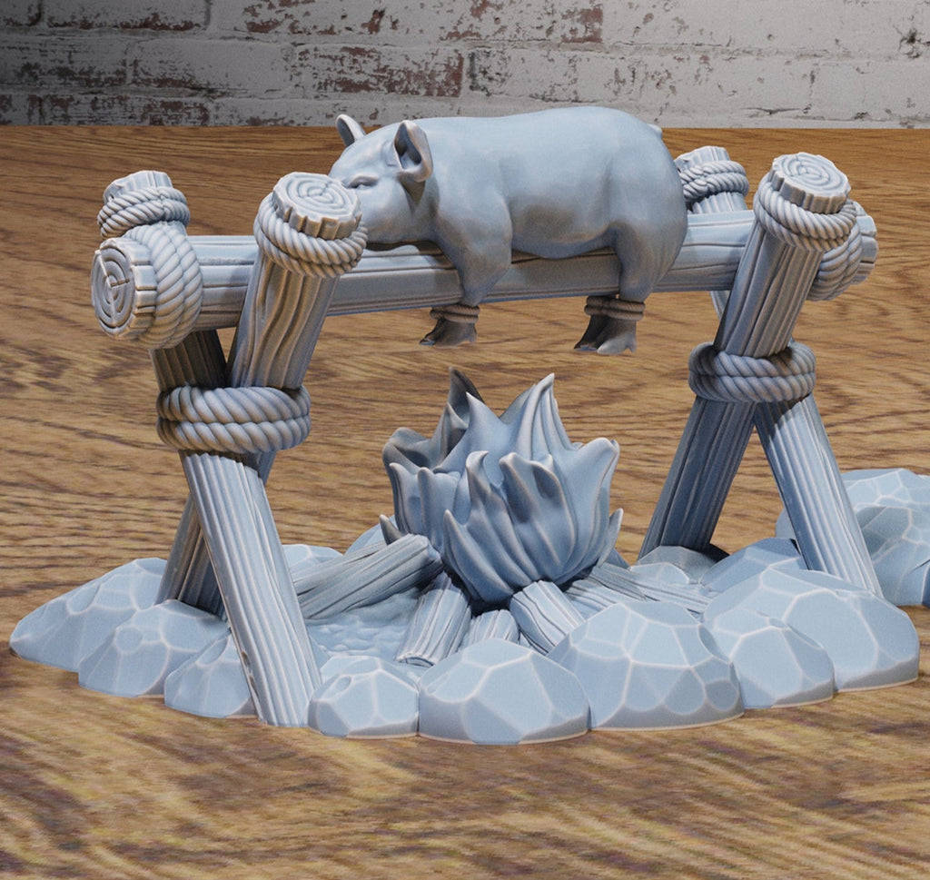 Bandit Camp Scatter Terrain – Campfires, Roasting Pig, Cooking Pot, Banner & Axe
