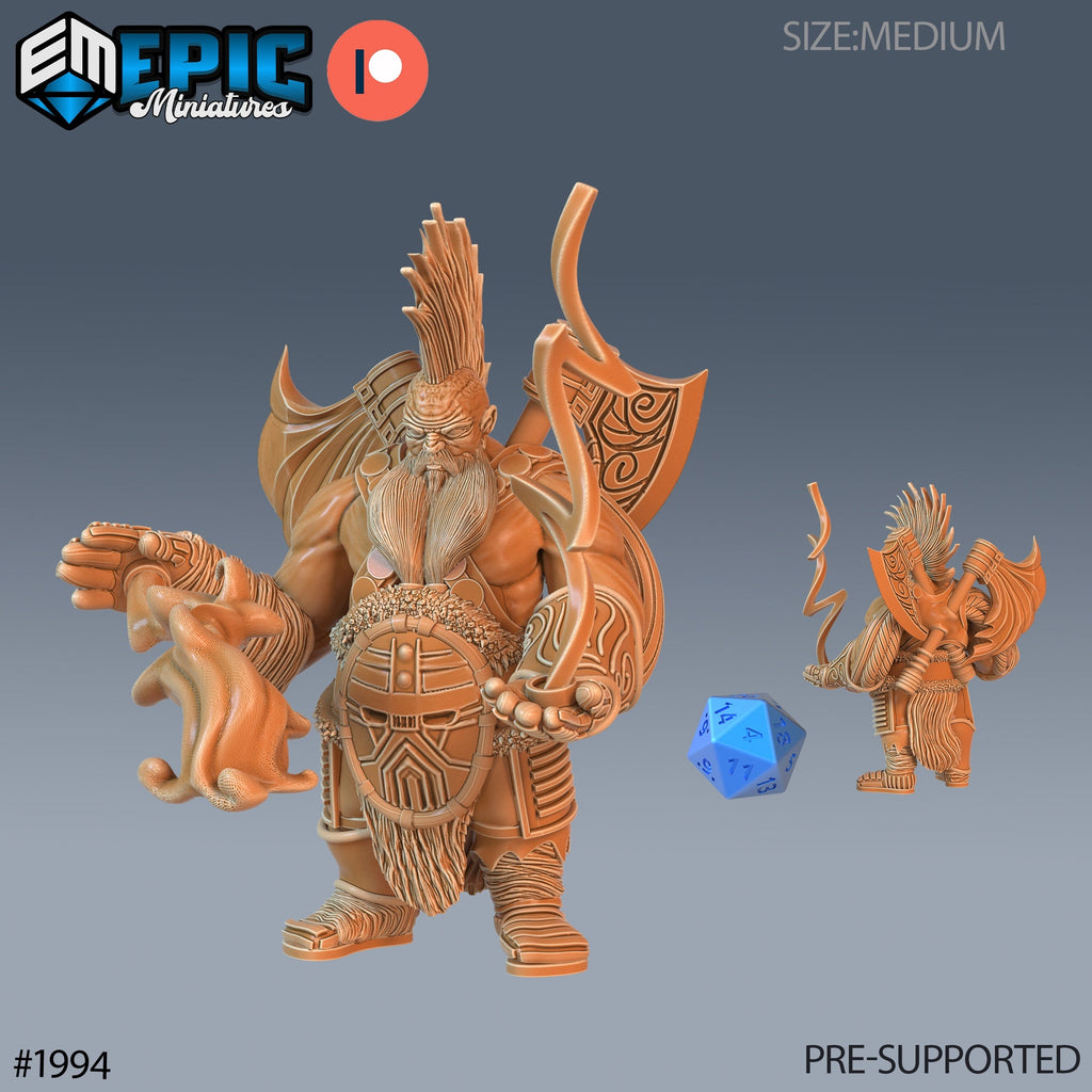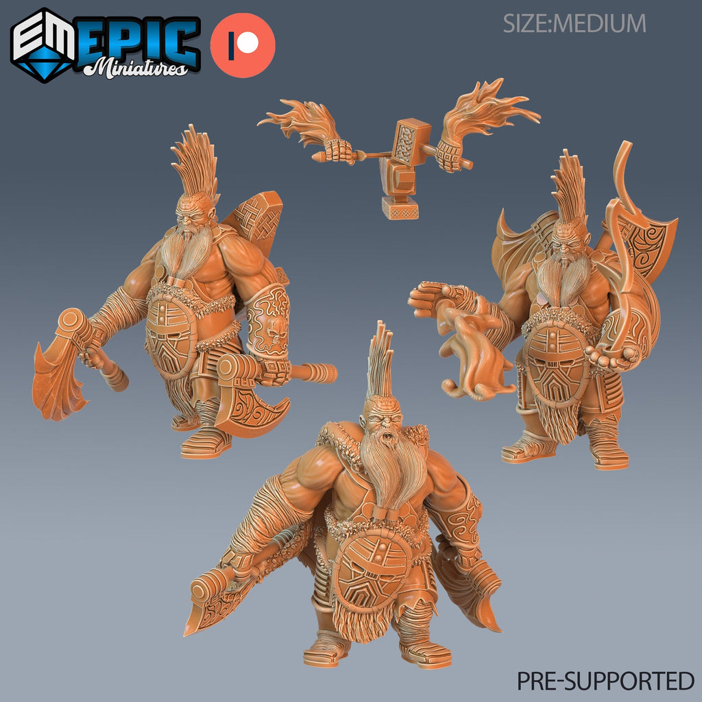 This trio of dark dwarves includes a fearsome axe-wielding warrior, a commanding lord in fur-lined armor, and a blacksmith channeling flame and rune magic. Perfect for evil-aligned dwarf clans in games like Pathfinder, Dungeons & Dragons, or Warhammer Fantasy. Includes swappable weapon options.