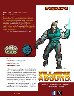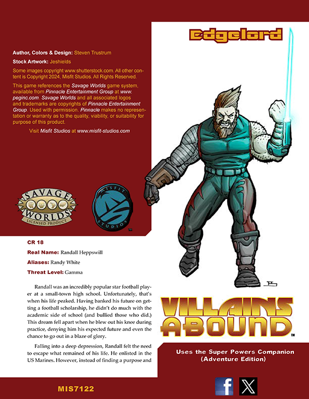 This Villains Abound release presents Edgelord, a figurative edgelord who took things to the next level with cybernetic enhancements to become the real deal. Now, this villain kills to prove that so-called "conspiracy theories" and "social norms" are just tools to keep the truth from the People.
