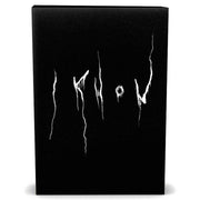 The MÖRK BORG GM Screen is a five-paneled portrait wall of death, printed with gold metallic ink on one side and vivid neon yellow on the other. The front is all art, five scenes of various locales and important characters in the Dying world. The GM-facing side sports a wide array of tables and rules summaries that might come in handy during play.