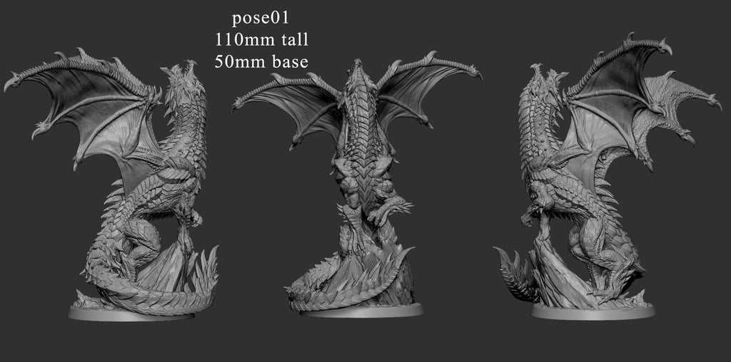 An awe-inspiring Adolescent Blue Dragon miniature, sculpted with intricate detail and available in multiple poses. With massive wings, razor-sharp claws, and a commanding presence, this young dragon is perfect for tabletop RPGs like Dungeons & Dragons and Pathfinder.