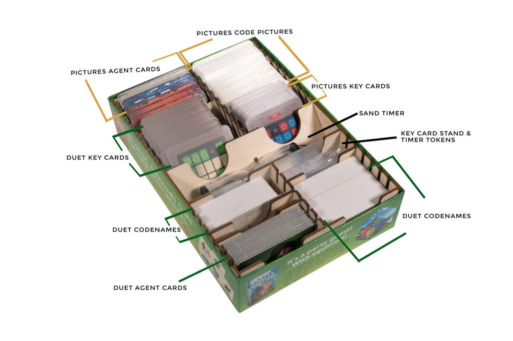 This is an officially licensed box organizer compatible with Codenames by CGE. CGE, Codenames and their logo are trademark of Czech Games Edition s.r.o., Karla Tomana 825, 27204 Kladno, Czech Republic. www.CzechGames.com |