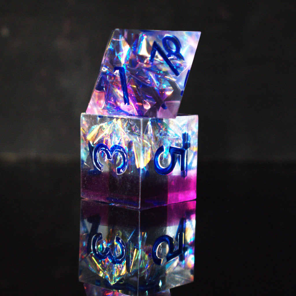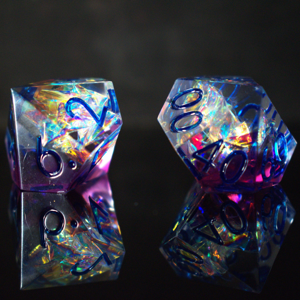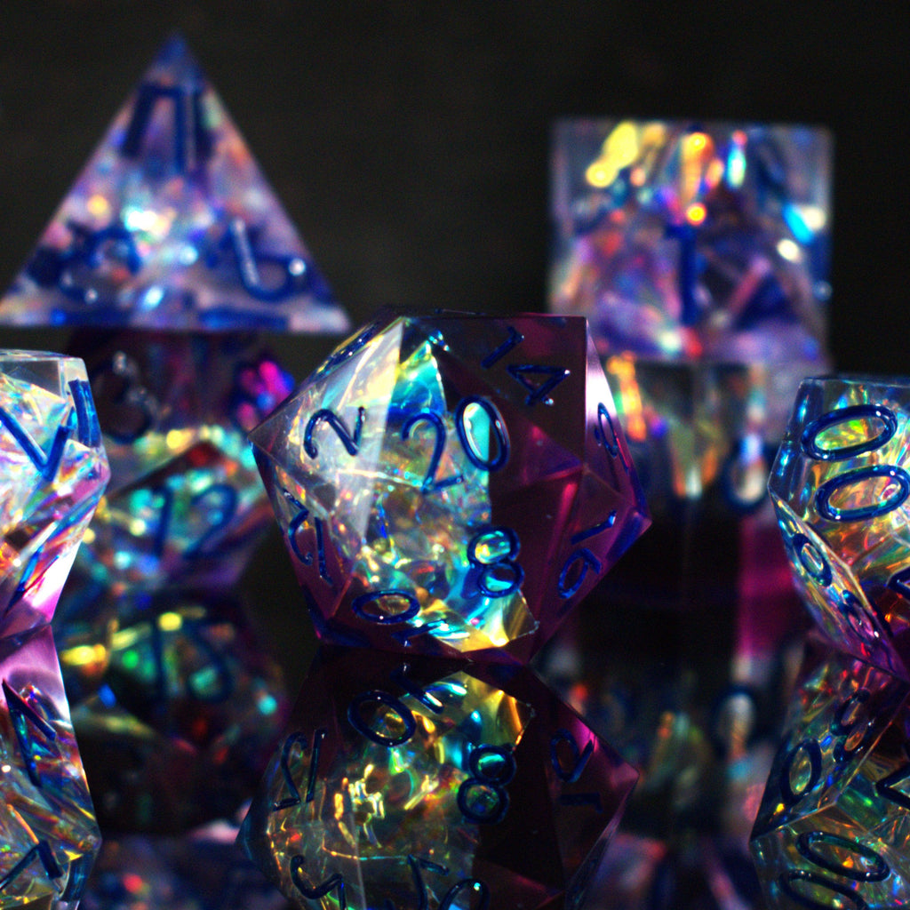 Hand-crafted from beginning to end, our sharp-edged resin dice feature gorgeously hand-painted numbers. These dice are ideal for any tabletop RPG game and are sure to impress at your upcoming session!