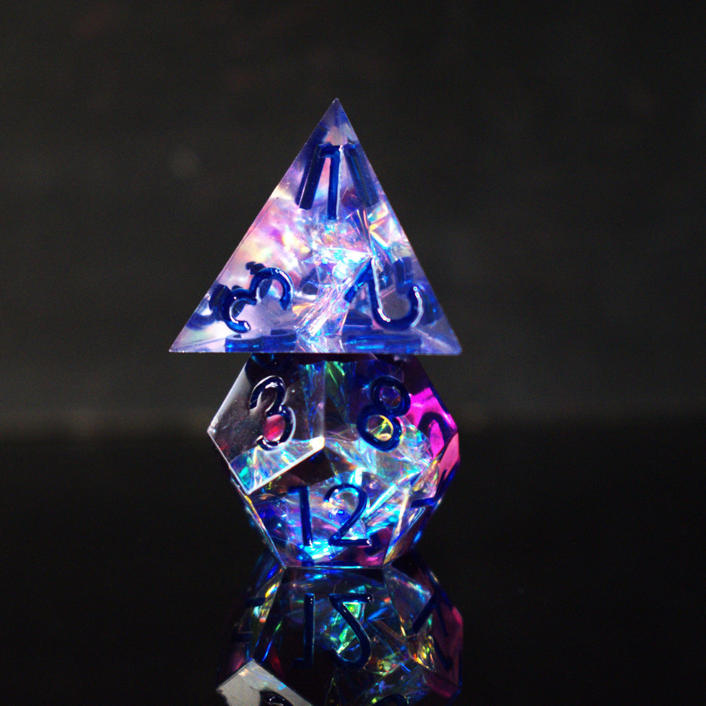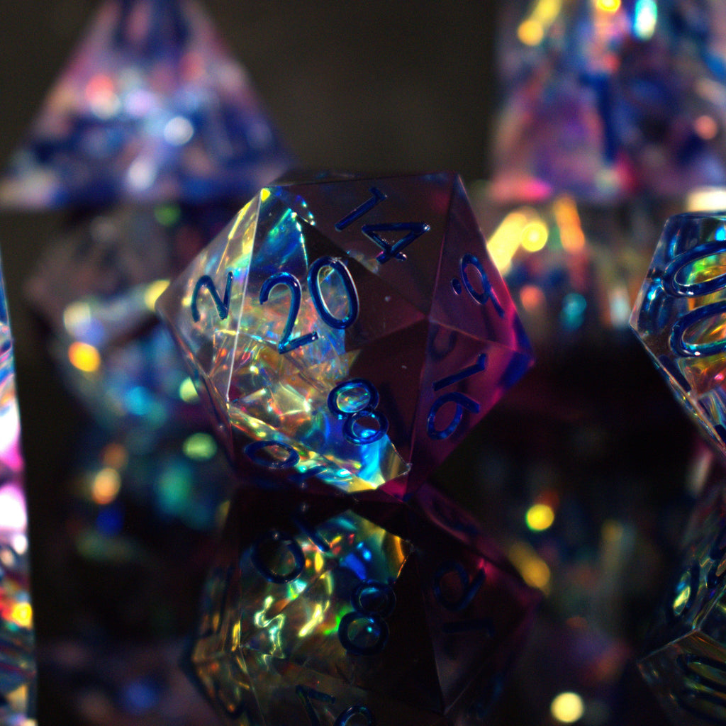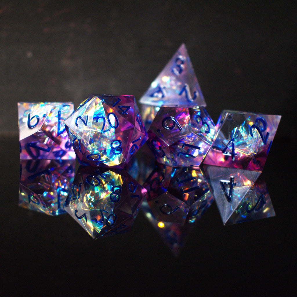 Hand-crafted from beginning to end, our sharp-edged resin dice feature gorgeously hand-painted numbers. These dice are ideal for any tabletop RPG game and are sure to impress at your upcoming session!