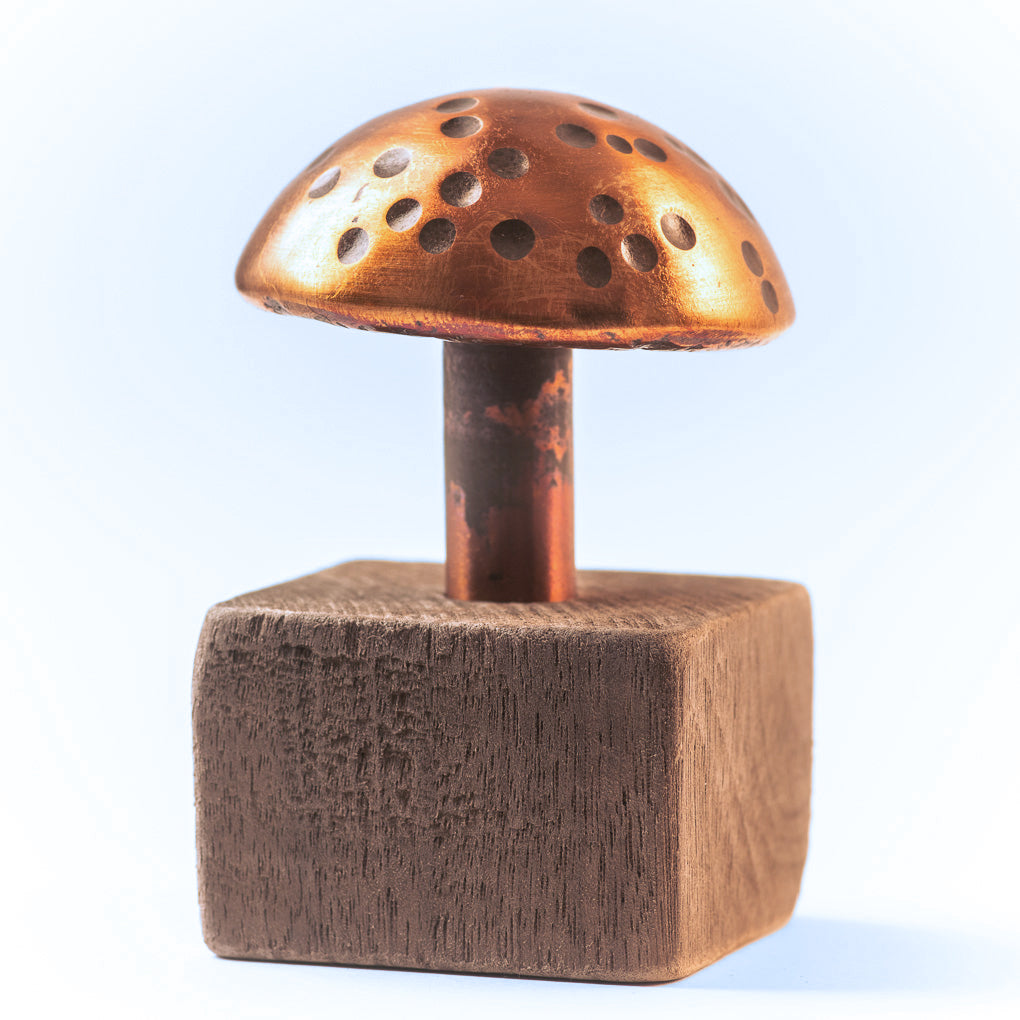 We cast these mushrooms in house using the pure copper left over from minting our coins. This process ensures copper purity as well as helps us to use our excess material. Once we use up our excess copper, these will go out of stock until we have enough material saved to make another batch.
