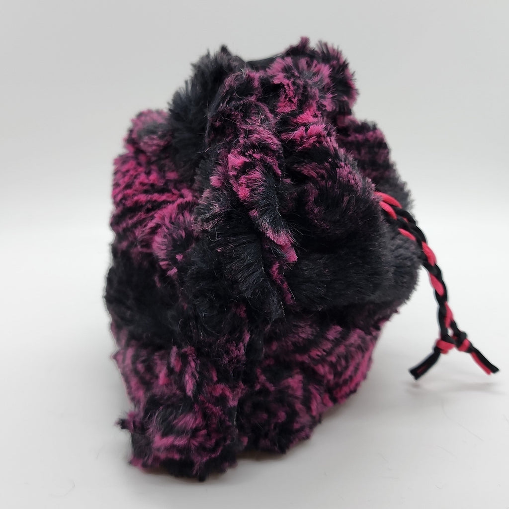 Enchanting Rakshasa has a hand braided vibrant pink and black minky exterior with a black interior minky lining to keep your dice protected from any other enchanting creatures. The satin rattail braid is a tight mix of fuchsia and black cording to keep your dice safely trapped....wait we mean contained and away from other demons.