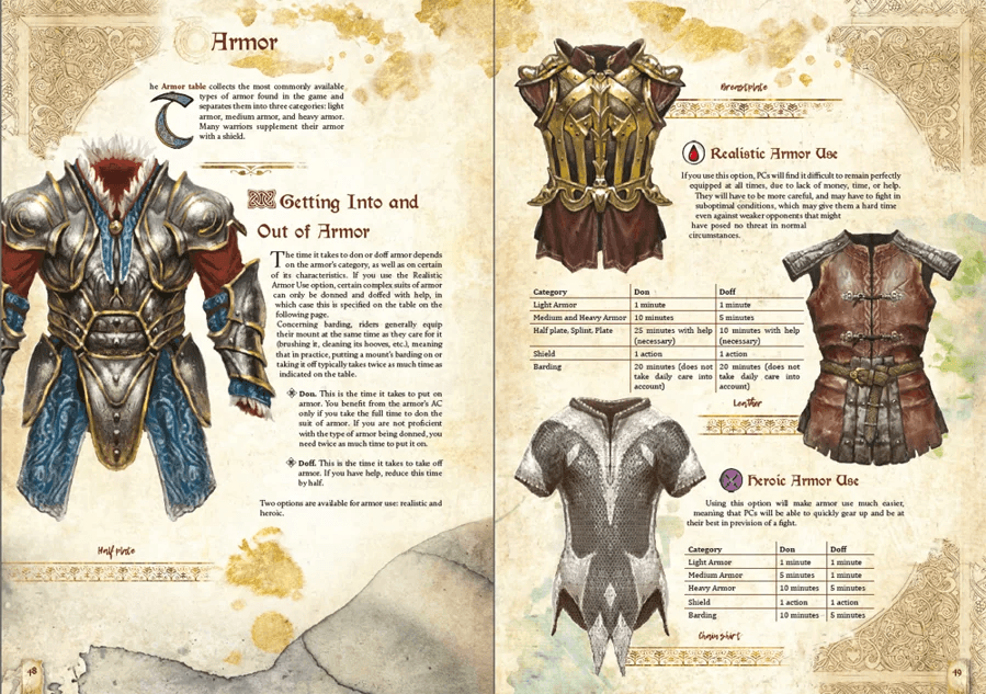 • Equipment. This play aid summaries the properties of all weapons and armor.