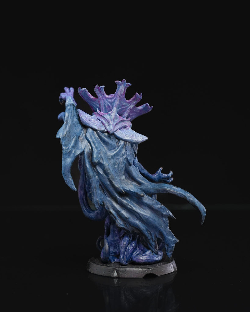 A captivating mind flayer miniature painted in deep purple and blue hues, featuring intricate tentacle details and dynamic posing, ideal for Dungeons & Dragons, Pathfinder, or other tabletop RPG adventures. Available both painted and unpainted for customization and collecting.