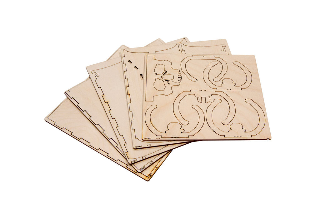 The Bones design displays a sinister skeleton that swallows your dice whole.