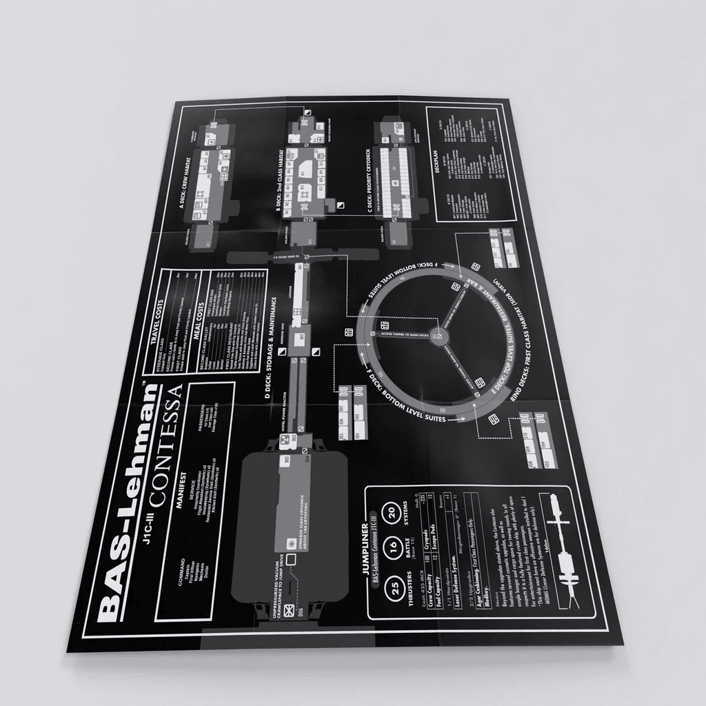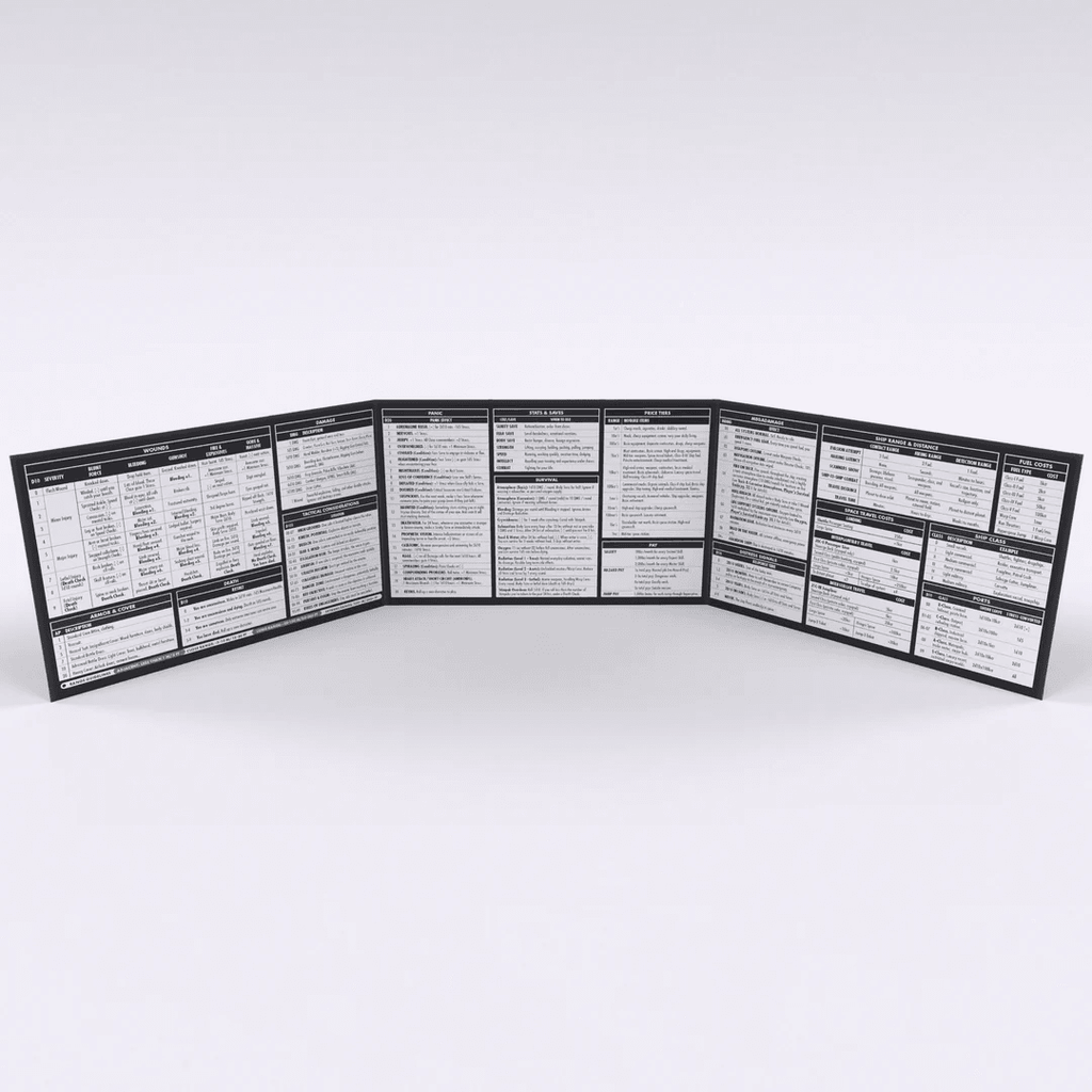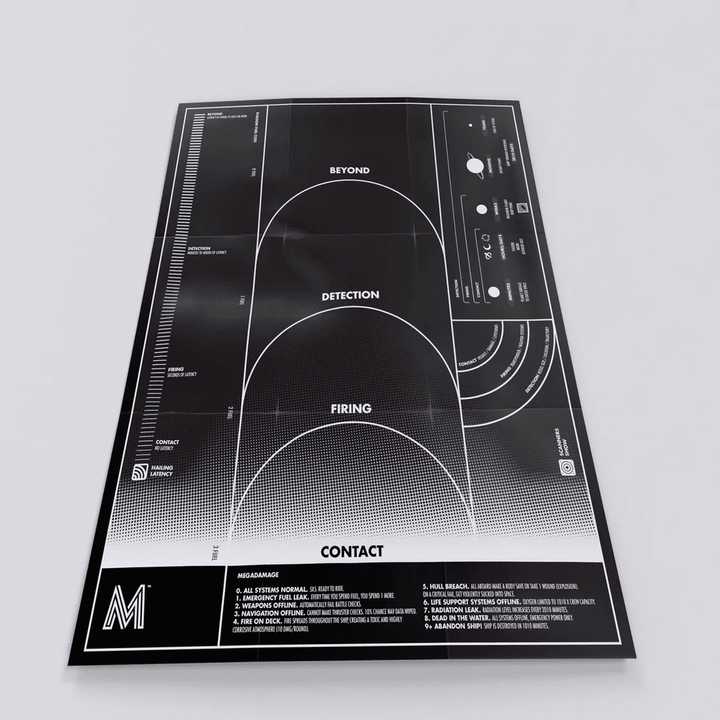 Everything you need to play in one horrifying box. It's complete with all the 1e (First Edition) core rulebooks, an introductory module, and a set of dice. When we first started designing Mothership®, this was the set we envisioned.