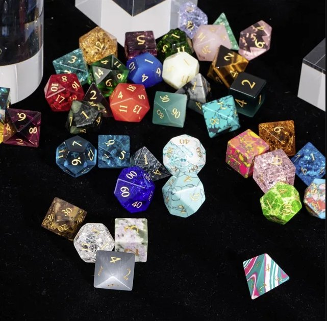 - 1 Random Semi-Precious Dice Set which consists of Ocular Glass and Stone Dice.