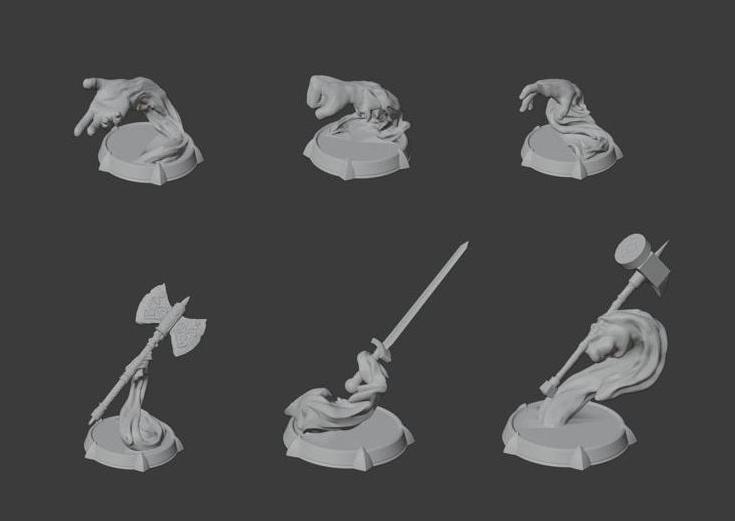 Elevate your tabletop RPG sessions with the Spiritual Weapons and Mage Hands set. Featuring intricate designs of spectral axes, hammers, swords, and ethereal hands, these seven unique pieces are perfect for games like Dungeons & Dragons and Pathfinder, enhancing spellcasting visuals and storytelling immersion.