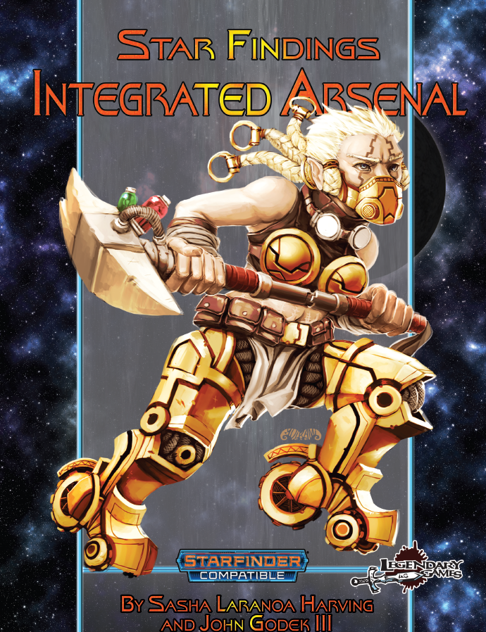 Get new options for your Starfinder Second Edition explorers of to combine meat and machine into cyber-organic firepower! Unleash the Integrated Arsenal archetype and an array of awesome feats like Rending Release, Cybernetic Storage, Upgrade Installation, and Stunning Assault!