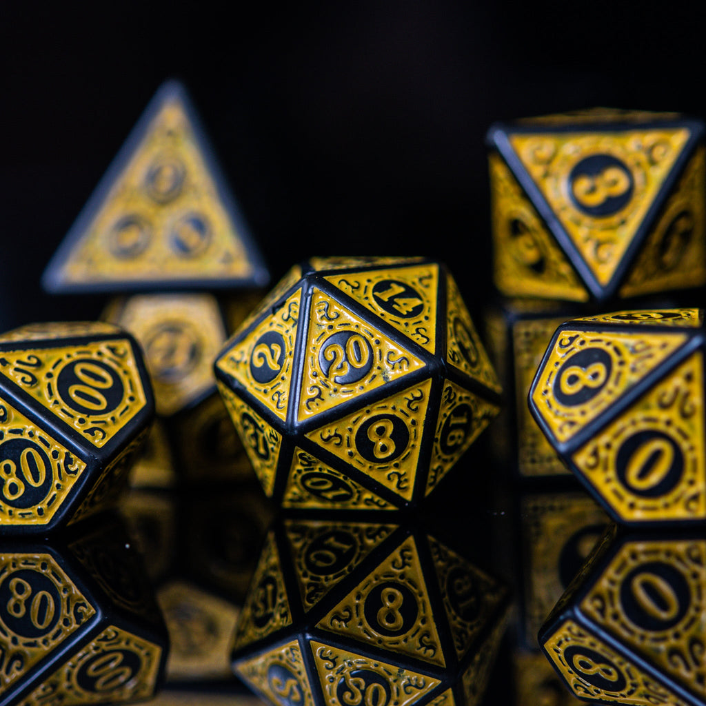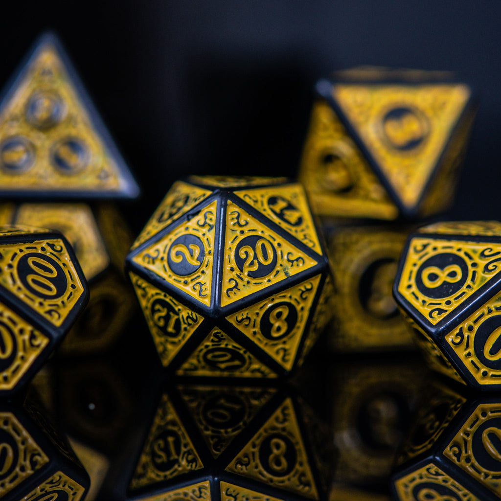 Each die is hand carved from pure gemstone and polished in a proper tumbler. Designs are then engraved into each side and hand painted. Gemstone dice are never guaranteed to have a perfectly balanced weight; however, each of our dice sets are always well weighted and well balanced.