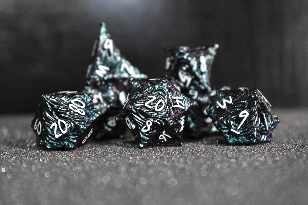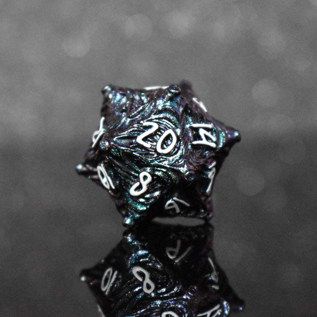 Our metal dice sets are all cast from zinc alloy metal to assure better balanced rolls. This set is perfect for any RPG and will be sure to impress at your upcoming session! Every set comes with its own metal dice tin for easy storage and a winning presentation.