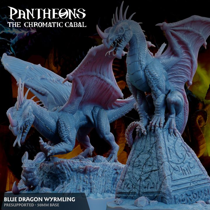 Fearsome Blue Dragon Wyrmling miniature with jagged scales, menacing wings, and a "who ate my kobold?" glare. Perfect for TTRPGs like Dungeons & Dragons or Pathfinder, this tiny terror is ready to zap your adventurers into crispy critters. A bold choice for any collection.