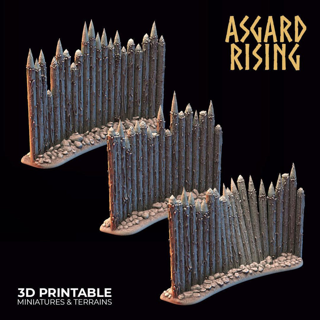 3D Printed Asgard Rising Fortified Village - Palisade Wall Modular Set 28mm - 32mm Ragnarok D&D